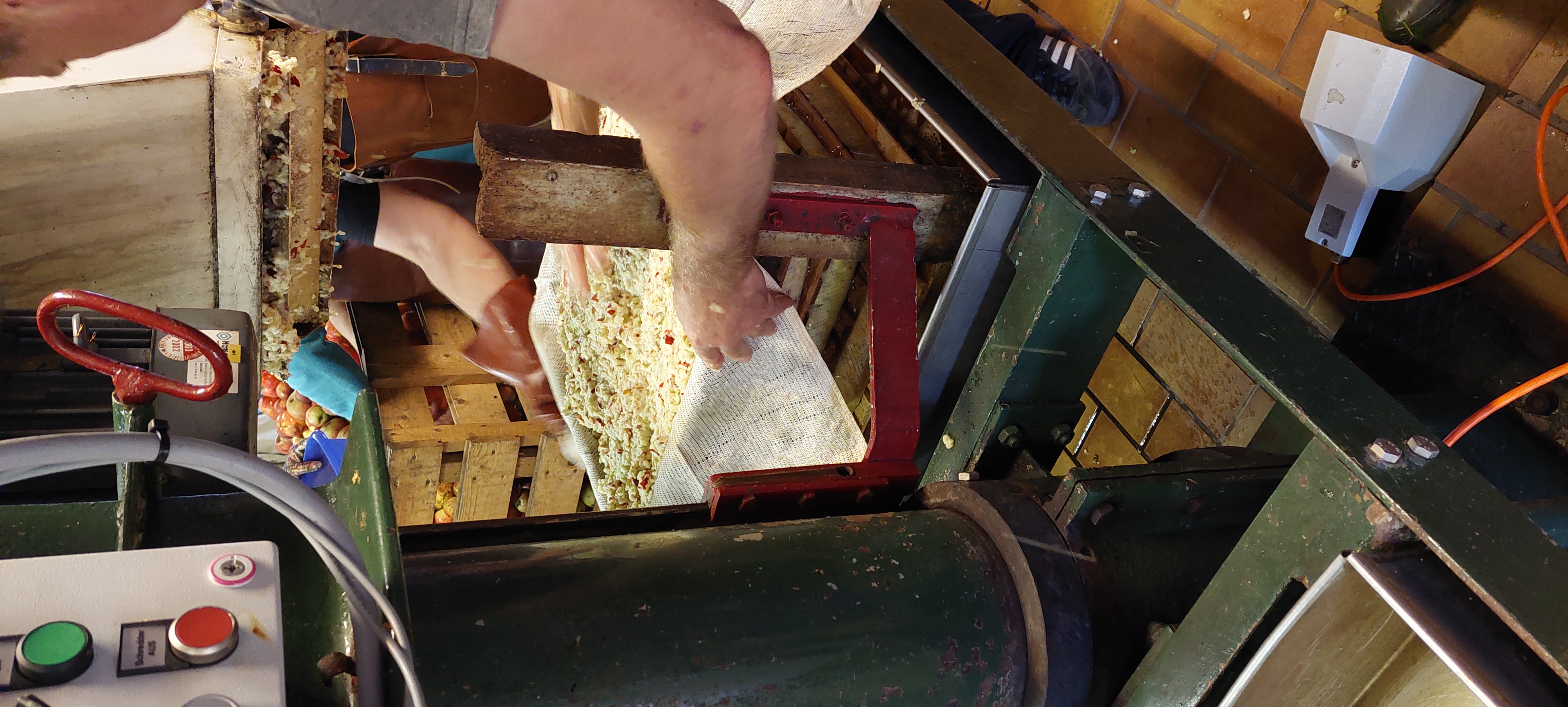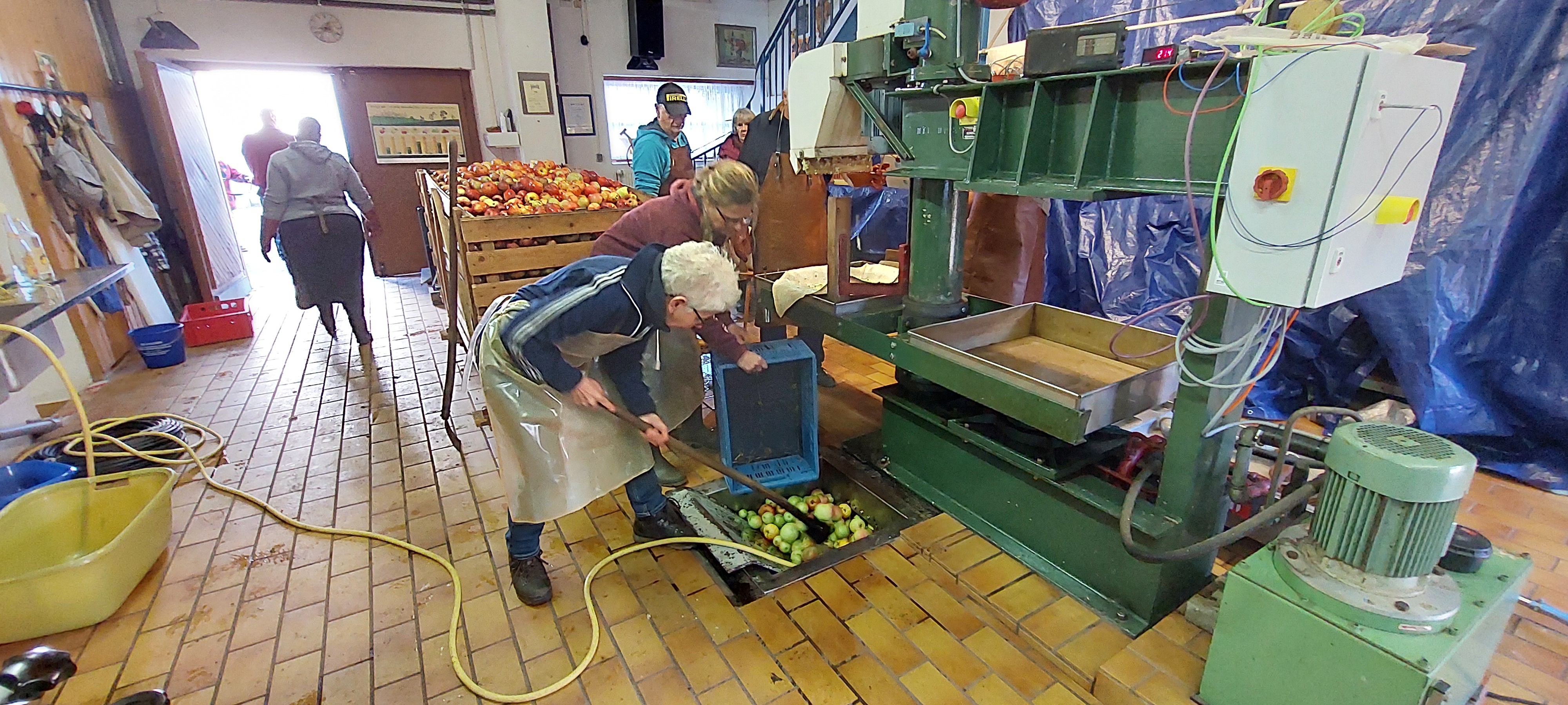 Im Kelterhaus kontrolliert und zum Keltern |