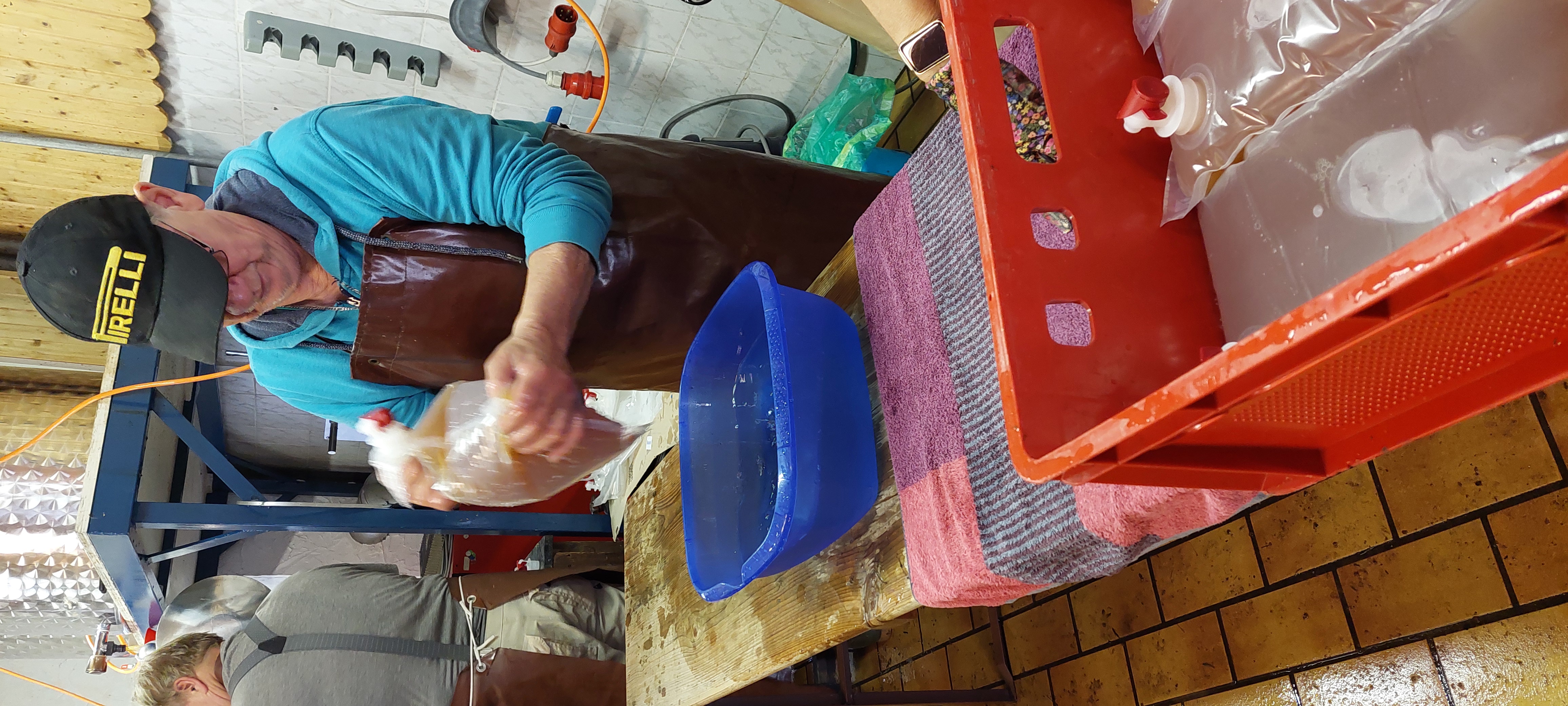 Im Kelterhaus kontrolliert und zum Keltern |