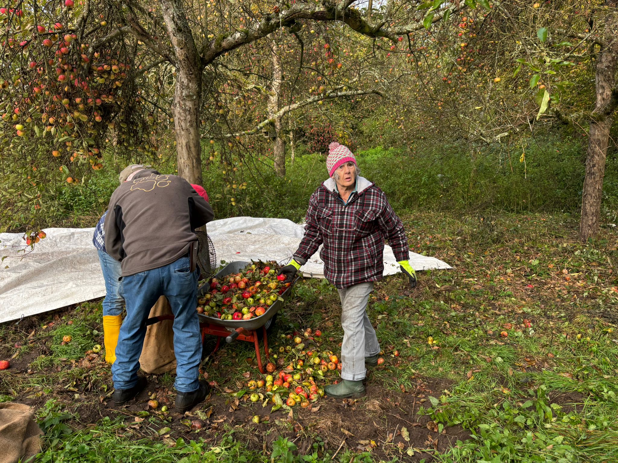 Äpfel werden von Mitgliedern auf der Obstwiese gesammlt. |